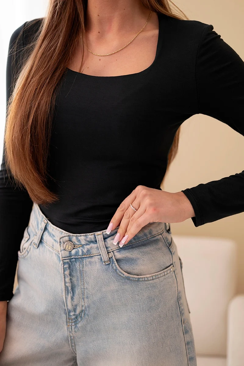 Minimalizm, który zachwyca! Ta bluzka damska z efektownym kwadratowym dekoltem to doskonała propozycja dla kobiet, które cenią sobie prostotę w modnym stylu. Wykonana z miękkiej, elastycznej dzianiny wiskozowej, świetnie dopasowuje się do sylwetki, podkreślając jej atuty i zapewniając wysoki komfort noszenia.