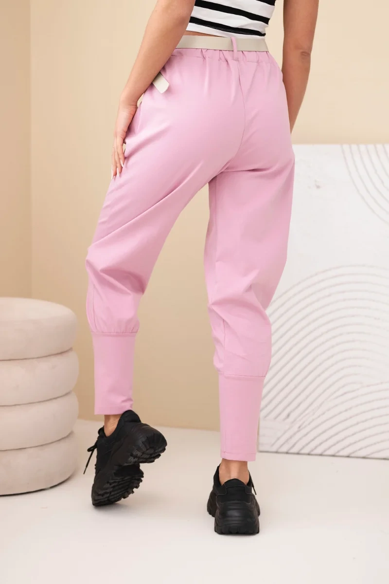 Szukasz wygodnych, a jednocześnie stylowych spodni na co dzień? Te spodnie damskie z wysokim stanem to idealne połączenie komfortu i modnego wyglądu. Dzięki elastycznej talii świetnie dopasowują się do sylwetki, a dołączony pasek z ozdobną klamrą dodaje im eleganckiego akcentu. Zwężane nogawki zakończone mankietem nadają całości nowoczesnego charakteru, a miękki materiał sprawia, że idealnie sprawdzą się zarówno w domu, jak i podczas spaceru czy spotkania z przyjaciółmi.