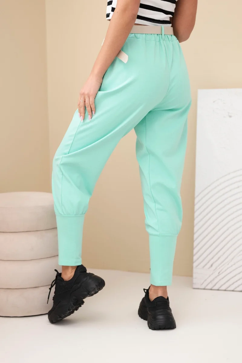 Szukasz wygodnych, a jednocześnie stylowych spodni na co dzień? Te spodnie damskie z wysokim stanem to idealne połączenie komfortu i modnego wyglądu. Dzięki elastycznej talii świetnie dopasowują się do sylwetki, a dołączony pasek z ozdobną klamrą dodaje im eleganckiego akcentu. Zwężane nogawki zakończone mankietem nadają całości nowoczesnego charakteru, a miękki materiał sprawia, że idealnie sprawdzą się zarówno w domu, jak i podczas spaceru czy spotkania z przyjaciółmi.