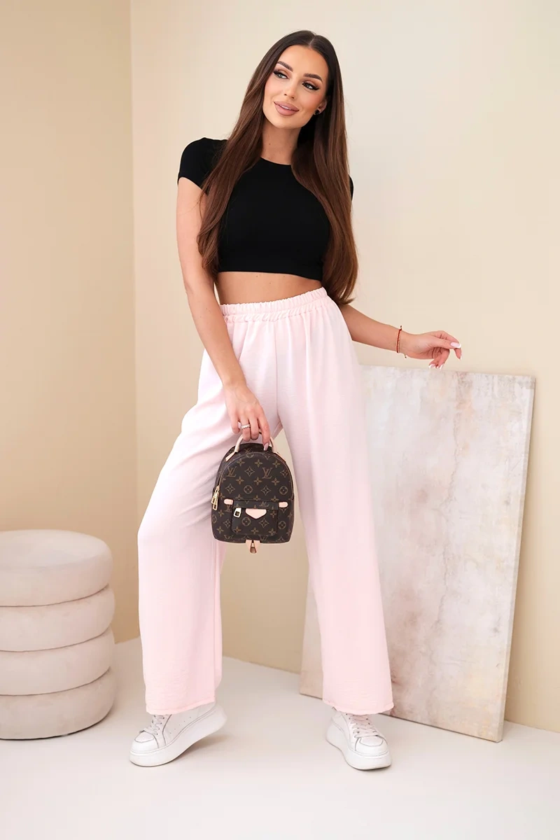 Spodnie z wiskozą z szeroką nogawką to wyjątkowy element garderoby, który łączy w sobie komfort i elegancję. Wykonane z lekkiego i przewiewnego materiału wiskozy, te spodnie gwarantują nie tylko swobodę ruchów, ale także zapewniają uczucie lekkości i świeżości przez cały dzień. Szeroka nogawka nadaje spodniom charakterystyczny, luźny fason, który jest zarówno modny, jak i wygodny. Ten element sprawia, że spodnie prezentują się niezwykle stylowo i efektownie, dodając oryginalności każdej stylizacji. Uniwersalny design spodni z szeroką nogawką sprawia, że doskonale pasują one do różnych okazji i stylizacji. Możesz nosić je zarówno do codziennych, luzackich outfitów, jak i do bardziej eleganckich zestawów na spotkania biznesowe czy wieczorne wyjścia. Spodnie z wiskozy z szeroką nogawką to idealny wybór dla kobiet, które cenią sobie wygodę i styl. Dzięki swojemu uniwersalnemu designowi i wysokiej jakości wykonania, te spodnie stanowią niezastąpiony element garderoby, który świetnie uzupełni każdą kolekcję ubrań. Rozmiar jest uniwersalny i będzie odpowiedni dla Pań noszących rozmiar S, M lub L.