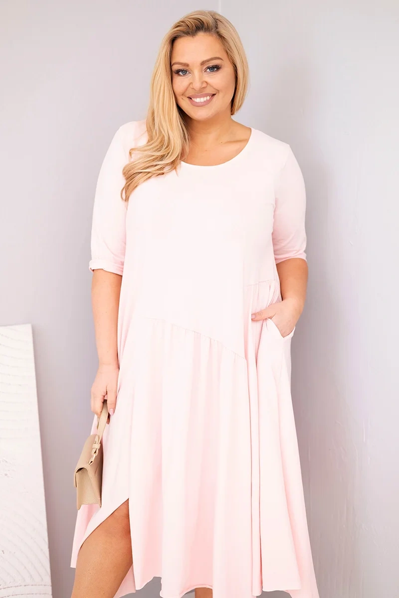 Sukienka damska bawełniana Plus Size z asymetrycznym dołem pudrowy róż-3